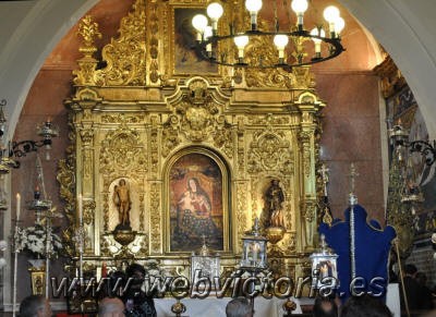 Virgen de la Victoria. El simpecado, alumbrado por dos