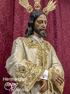 Para esta ocasión el Señor luce su túnica bordada en oro
