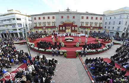 sobre las sienes de la Virgen de la Victoria.